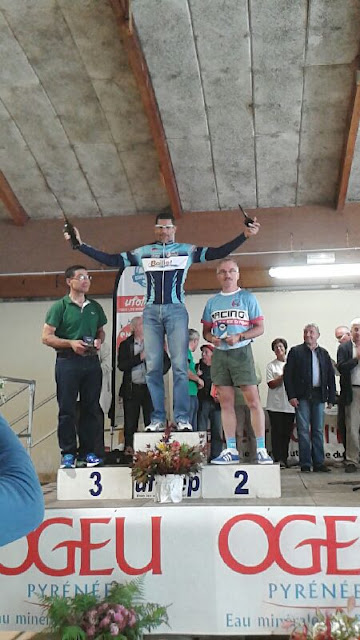 Après 2 semaines de thalasso , banyuls et vélo je viens de remettre les pendules à l’heure avec une victoire dans ma catégorie à Oloron et en guerrier (pluie, purée de pois et une tonne de gravillons dans la descente.) Et d’autres péripéties que je  raconterai une autre fois…