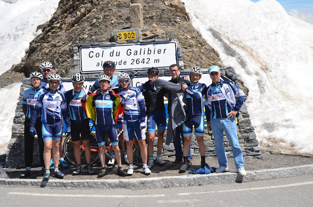 Dans une descente juste avant St Jean de Maurienne, Alain a fait une chute sans gravité, quelques éraflures et sa roue arrière hors d’usage. Le groupe a attaqué le col du télégraphe à un rythme plutôt sage ce qui a permis une ascension assez homogène.