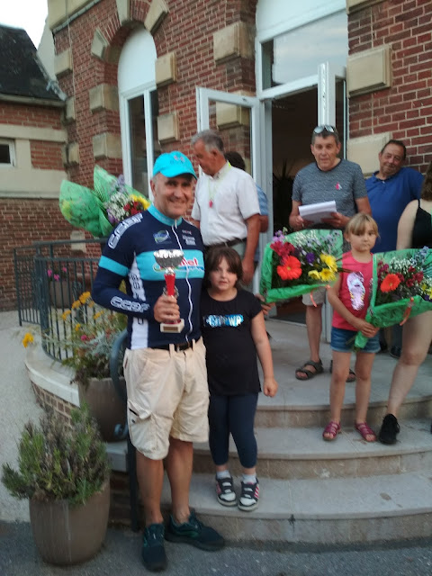 Au milieu de la bosse, Henri me crie « Vas y tout seul ! ». Aussitôt dit, aussitôt fait.. Je m’arrache dans la bosse sur le 53X16, et là, tel un Nibali en haut du Poggio, je bascule et plonge dans la descente ;-). Je ne suis pas revu, Victoire !