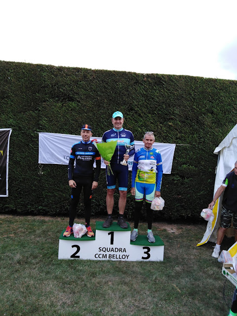 Gilles lui sur une course de deux jours en FFC Seine et Marne première étape grand vent une échappée qui se dessine tout de suite en bordure Gilles y est plus que présent avec des attaques multiples finish à cinq pour place de deux, quatre sur la ligne. Dimanche verdict avec arrivée dans bosse à 17 % à demain Gilles qui est quand même repassé à Attainville pour féliciter les copains et leur payer une bière!