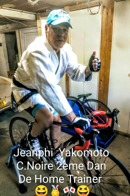 La bande de gais lurons ne s’est pas faite prier et les gars ont commencé à délirer, avec des photos de plus en plus farfelues.Vous pouvez les voir sur le site, alors si vous êtes inspirés, pour faire rire les copains en ces temps de sinistrose, à vos appareils photo. La seule contrainte est de la prendre sur home-trainer, après vous faites ce que vous voulez pourvu que cela reste comique.À vos appareils !!!!