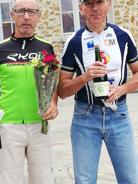 35 partants en 4, circuit de 7,1 km x 6 tours avec un belle bosse comme je les aime 900 m avec des changements de pourcentage. Les deux premiers tours se font sans trop d’attaques , je me cache un peu . Troisième tour, un coureur attaque au pied de la bosse je le suis puis je durcis l’allure; au sommet nous avons une centaine de mètres d’avance. Les relais s’enchainent parfaitement . Dernier tour 1,30 d’avance sur le peloton, dans la bosse j’attaque et je lâche mon compagnon d’échappée, je finis seul le dernier tour : je gagne et je remonte en 3